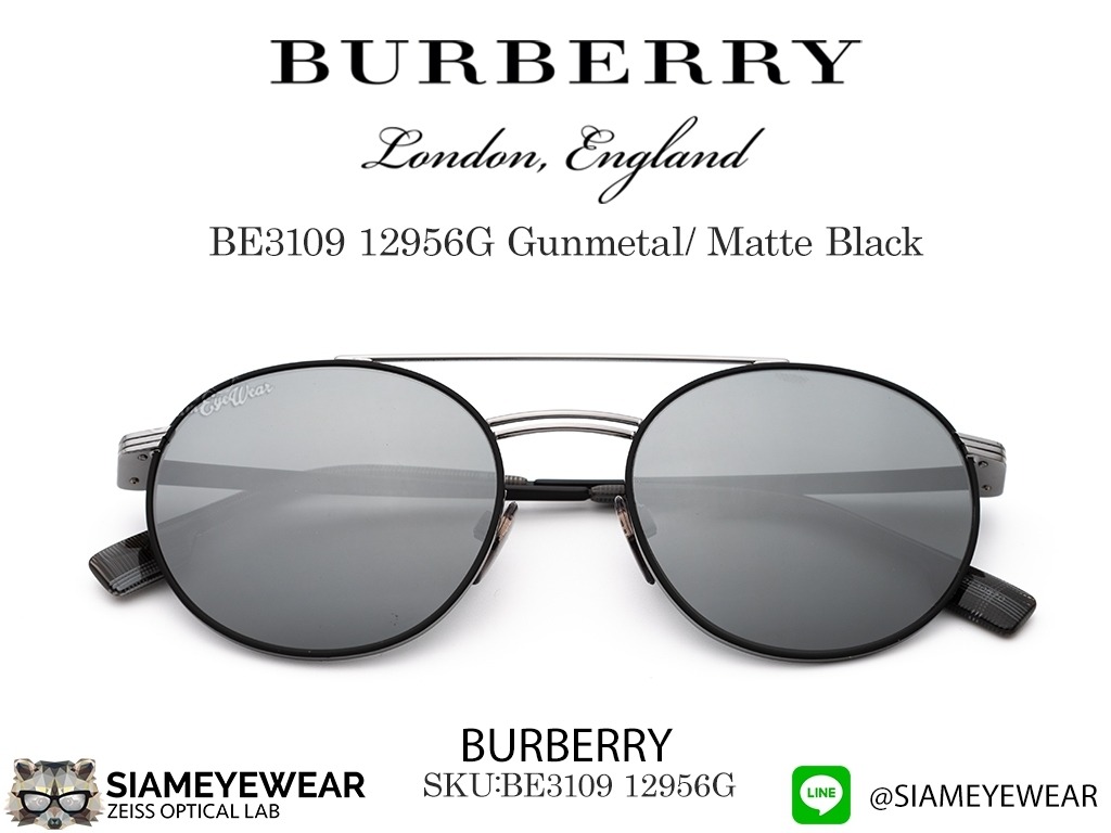 - แว่นกันแดด Burberry BE1309 12956G Matte Black/Grey Silver Mirror ของแท้