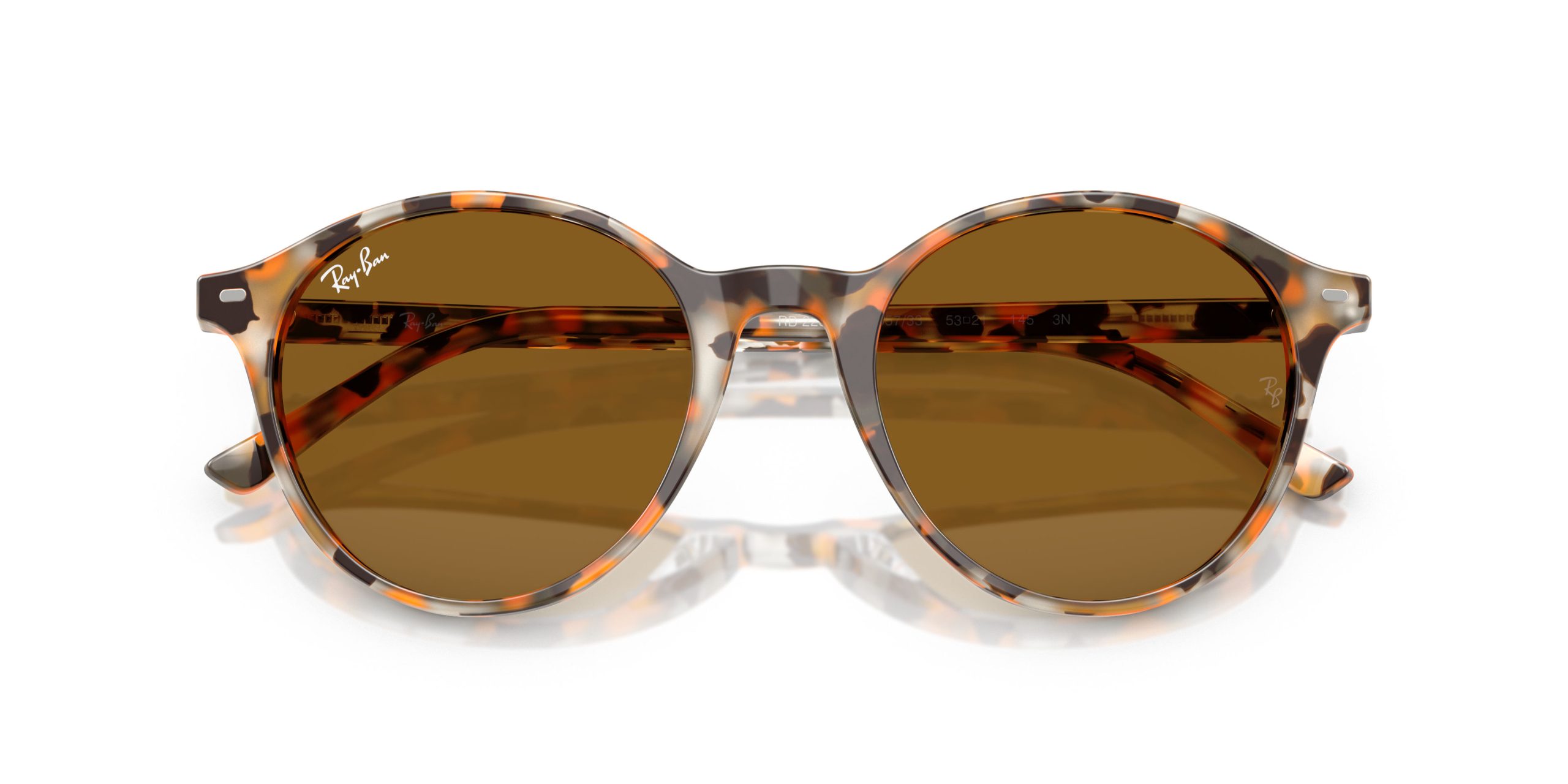 Bernard RB2230F คือทรงกลมคลาสสิกของ Rayban ที่ตัดโทนดำแบบปกติออกไป แล้วใส่ลายอะซิเตทสีเทาฮาวานาและน้ำตาลลงไปแทน เวลาใส่จริงจะไม่ดูจัดและไม่หนักหน้าเท่ากรอบกลมสีดำ. วัสดุอะซิเตททั้งกรอบและขาแว่นช่วยให้งานสีดูลึก มีมิติ ไม่ใช่สีพลาสติกแบน. ตัวเลนส์สีน้ำตาลที่ติดมาเป็นเลนส์ตัวอย่าง ลูกค้านำมาเปลี่ยนเป็นเลนส์สายตาตามค่าจริงได้ทันที.