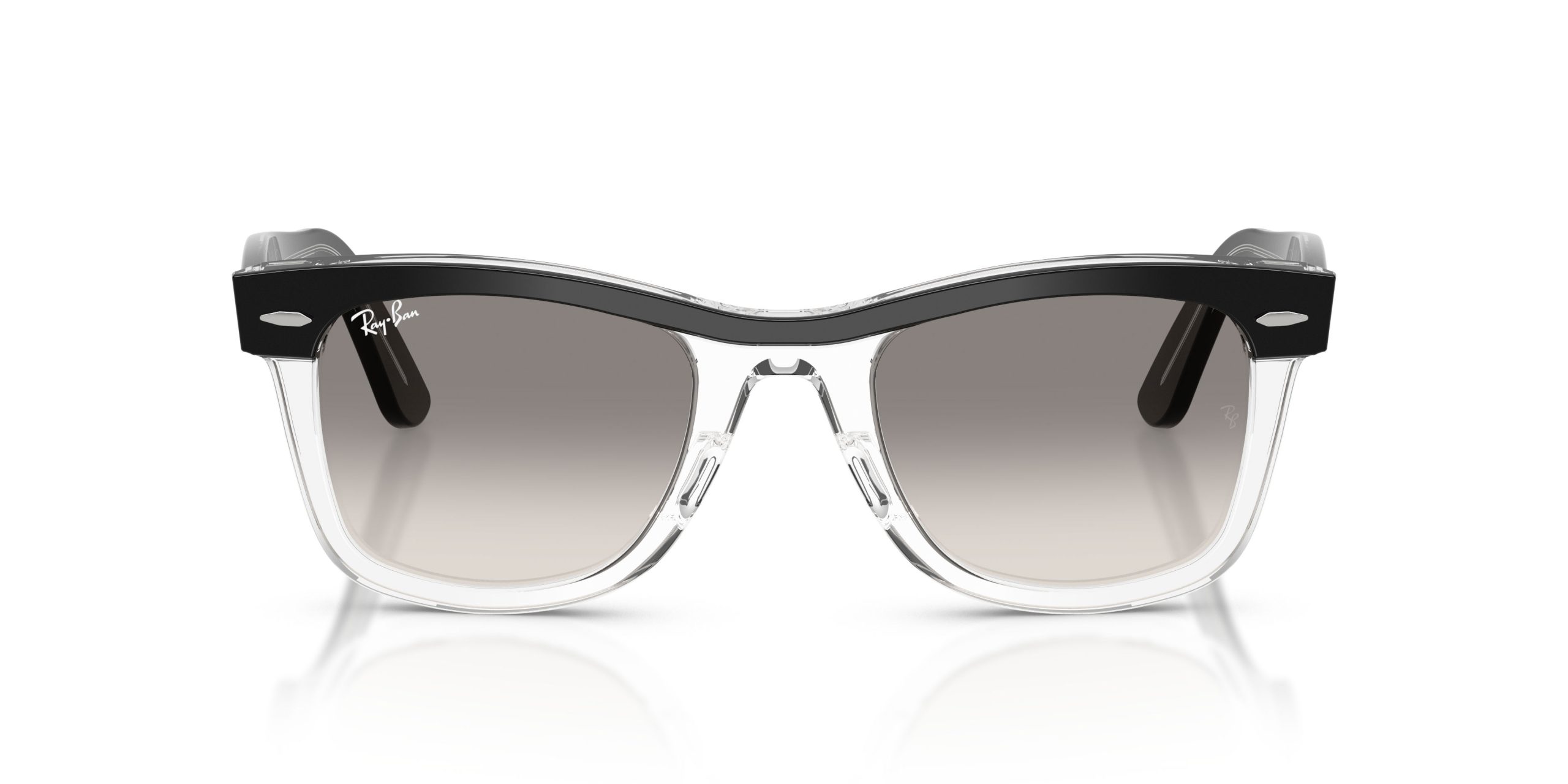 Rayban WAYFARER RB2240F 129432: Wayfarer เวอร์ชันกรอบดำพื้นโปร่งใส พร้อมเลนส์ไล่ระดับสีเทาเป็นใส ให้อารมณ์ Wayfarer คลาสสิกแต่ดูบางลง เหมาะกับหน้าวงรีและหน้ากลม. เหมาะกับคนที่อยากได้ Wayfarer เป็นแว่นกันแดดสายตาตัวหลัก แต่ไม่อยากให้กรอบดำเต็มบล็อกหน้า.