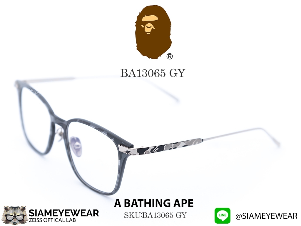 กรอบแว่นตา A BATHING APE BA13065 GY ทรงสี่เหลี่ยม Full Metal Frame กรอบโลหะน้ำหนักเบาเพียง 20 กรัม หน้ากรอบสีเทาดำลายพราง ขาแว่นโลหะเรียวบางพร้อมลาย Camo ผลิตด้วยมือที่ญี่ปุ่น (Handmade in Japan)