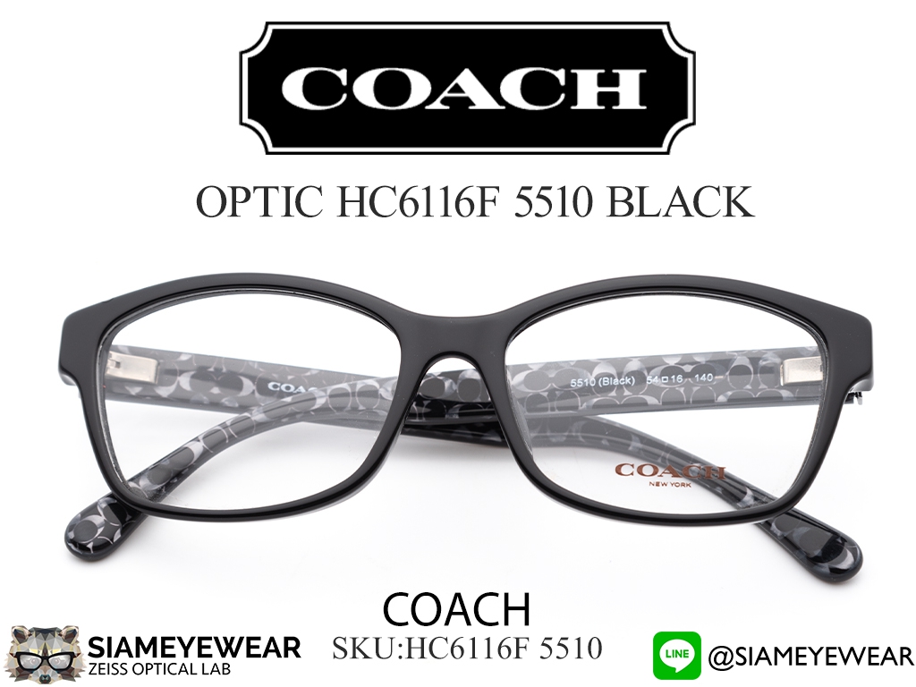 กรอบแว่นตา Coach HC6116F 5510 Black เป็นกรอบอะซิเตทสีดำคลาสสิก รุ่น F (Full Fit) ที่ออกแบบมาเพื่อคนเอเชียโดยเฉพาะ