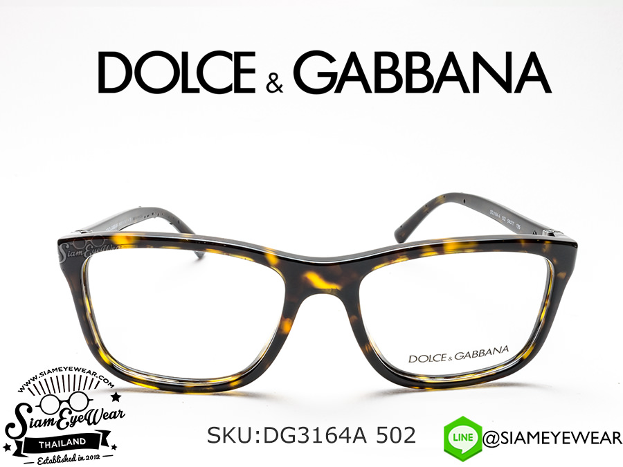 กรอบแว่นสายตา Dolce & Gabbana DG3164A 502 สี Havana (กระดองเต่า) กรอบ Acetate คลาสสิก A = Asian Fit ออกแบบสำหรับคนเอเชีย ผลิตโดย Luxottica ประเทศอิตาลี