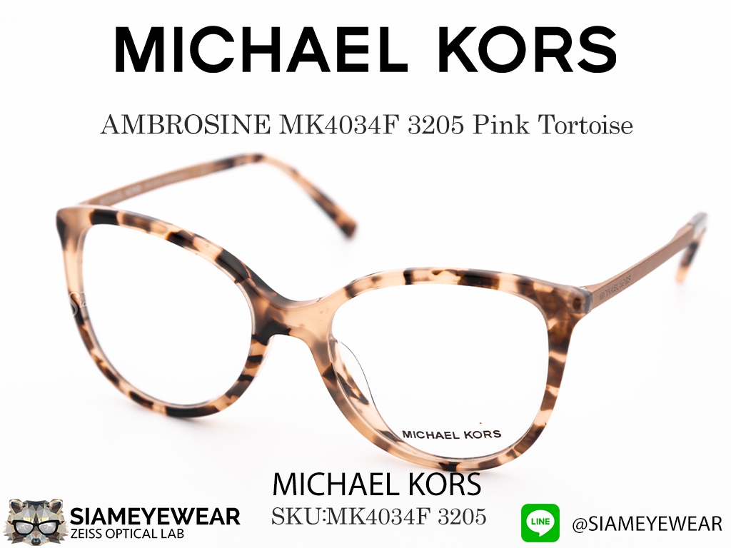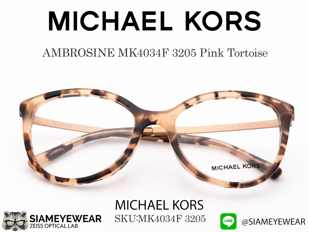 กรอบแว่นสายตา Michael Kors AMBROSINE MK4034F 3205 รุ่น Asian Fit สี Pink Tortoise ลายกระดองเต่าโทนชมพูสุดน่ารัก กรอบ Acetate ผสมขาแว่นโลหะ ออกแบบมาเพื่อคนเอเชียโดยเฉพาะ ใส่สบายทั้งวัน