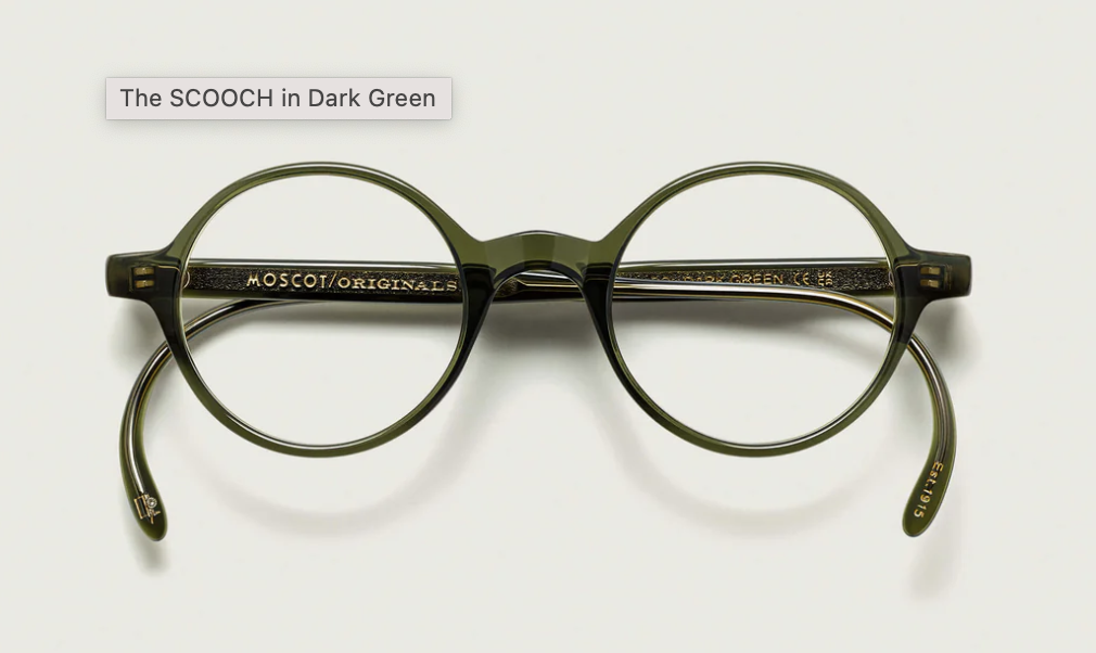 Moscot Scooch 46 Dark Green แว่นตากรอบอะซิเตทสี Dark Green เขียวเข้มลึกล้ำ ทรง Round Panto คลาสสิก ขนาดเลนส์ 46 มม. มาตรฐาน สีเขียวธรรมชาติที่ดูสุภาพและมีเอกลักษณ์ งานฝีมือระดับพรีเมียมจาก Moscot New York