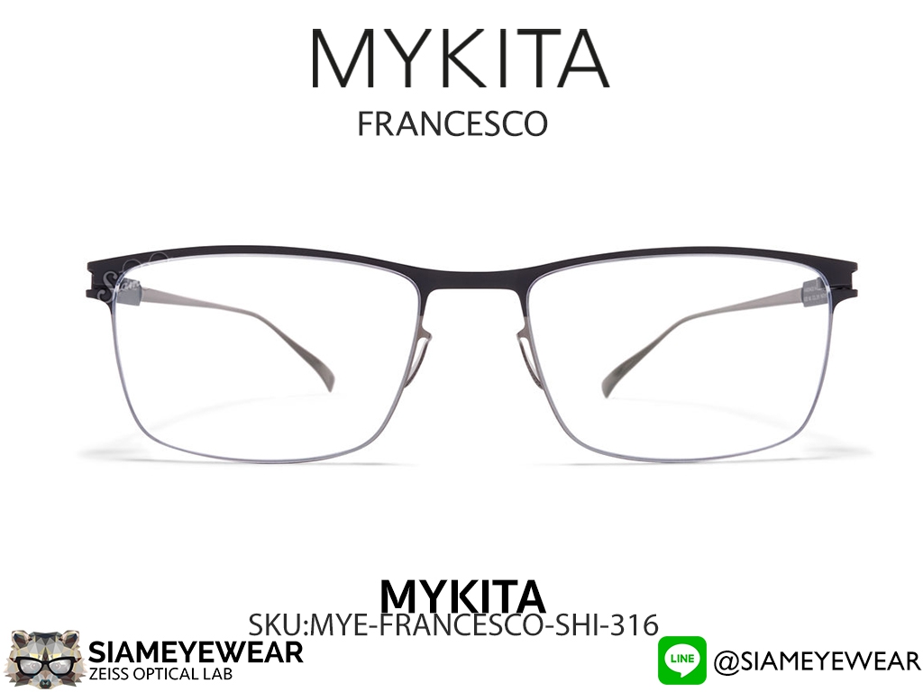 Mykita ก่อตั้งในปี 2003 ที่กรุงเบอร์ลิน ประเทศเยอรมนี โดดเด่นด้วยนวัตกรรมบานพับไร้สกรู (Screwless Hinge) และการใช้สเตนเลสสตีลแผ่นบาง (Sheet Metal) ที่ทำให้แว่นมีน้ำหนักเบาเป็นพิเศษ รุ่น Francesco เป็นกรอบทรงสี่เหลี่ยมคลาสสิกที่เหมาะกับทุกโอกาส ทุกชิ้นผลิตด้วยมือที่เบอร์ลินและได้รับรางวัล Red Dot Design Award