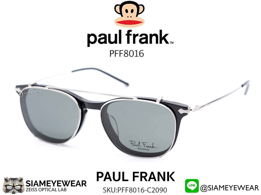 กรอบแว่นสายตา Paul Frank Optic PFF 8016 2090 Black Silver พร้อม Clip-on C8080C Silver Green กรอบอะซิเตทสีดำเงินจากคอลเลกชัน Paul Frank Optic มาพร้อมคลิปออนกันแดดสีเขียว สไตล์อเมริกันวินเทจ