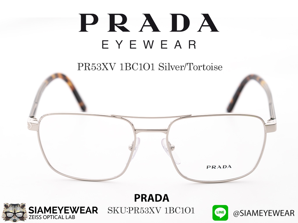 กรอบแว่นตา Prada Optic PR53XV 1BC1O1 สี Silver/Tortoise เป็นกรอบแว่นสายตาผสมผสานโลหะสีเงินกับลาย Tortoise ดีไซน์ที่รวมความคลาสสิกกับความทันสมัยในกรอบเดียว